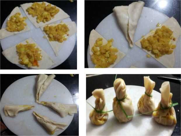 Hacer la forma de bola de masa como se muestra en la imagen y hacer un nudo con hoja de hierba.