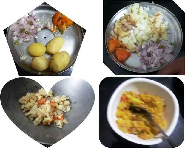 2. agregar el puré de papas. Calor por unos 5 minutos. Puso de la llama y deje enfriar. Mezclar el jugo de limón y hojas de cilantro.