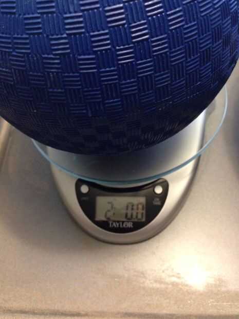 Al principio estaba usando una báscula de baño, pero no sentía fue muy preciso, tenía que pesar yo, luego pesar yo sosteniendo la bola. Así encontré a escala de la cocina de mi esposa que era el perfecto tamaño y más exacto.