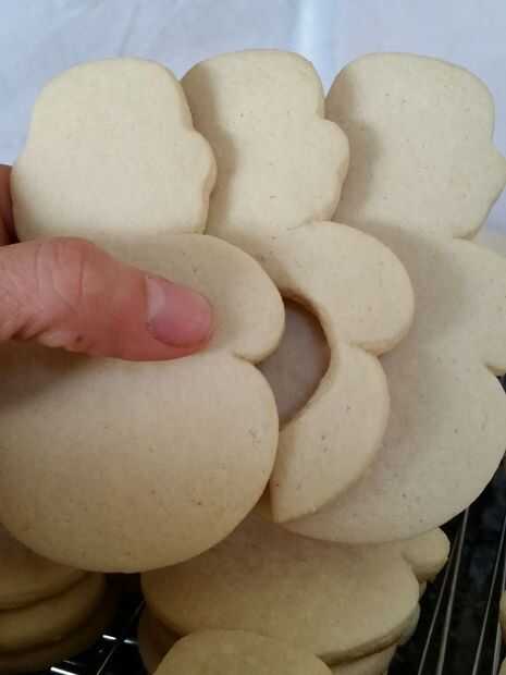Se necesita 3 muñecos de nieve galleta corte outs. Uno de los 3 muñecos de nieve debe tener un círculo cortado desde el centro que necesita un corte líder del círculo en la parte inferior de la galleta (Esto actúa como la "salida" para el muñeco de nieve cagando). También es donde usted pondrá sus "bolas de nieve" en la futura Asamblea.