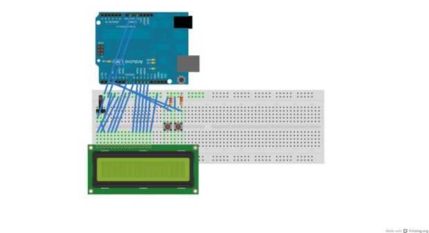 1. mire la imagen. Conectar el LCD a los pines especificados en el cuadro y el potenciómetro.