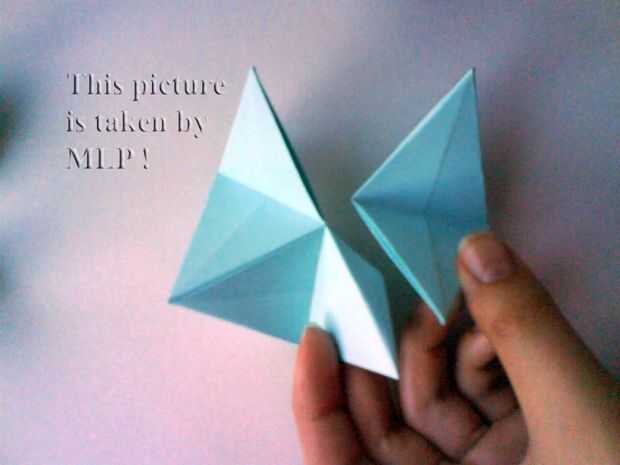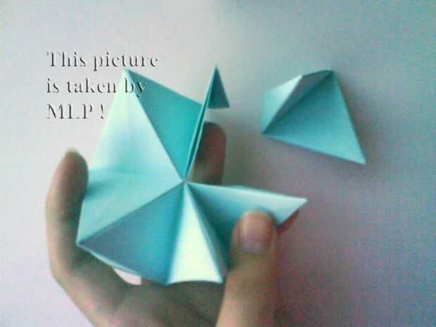 Paso 1. Puño de todos que vamos a hacer uno de los puntos de nuestra pelota. Toma 5 hojas desde el interior de color (azul) y pegar como esta (ver los 6 primeros cuadros). Poner pegamento en la inserción y ponerlo en el bolsillo.