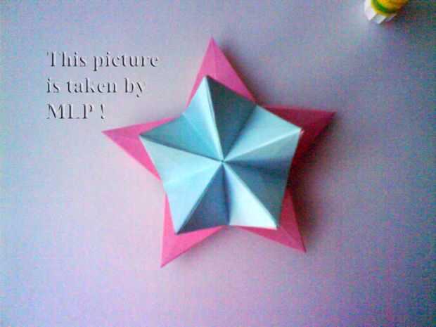 Paso 2. Luego toma 5 hojas desde el exterior de color (rosas) y pegar con uno azul "pequeña estrella" (ver fotos 7 y 8). Se trata de "estrella".