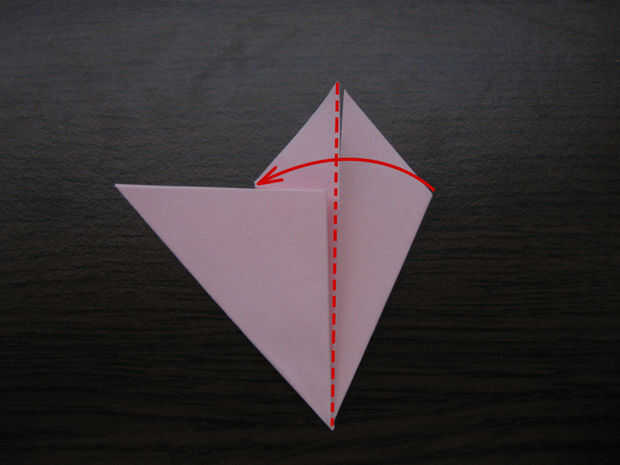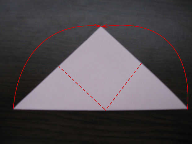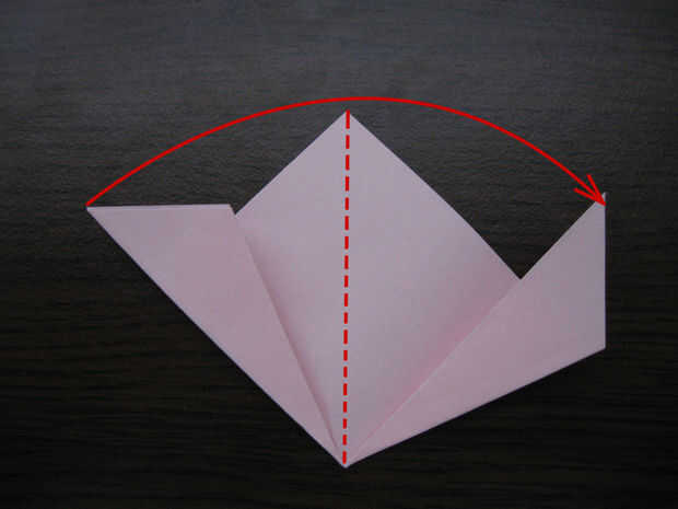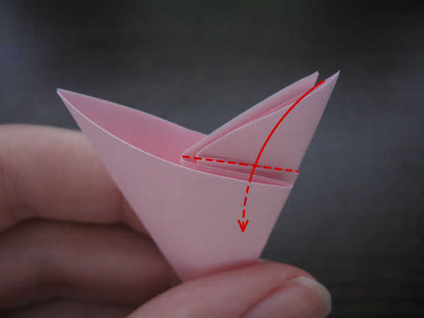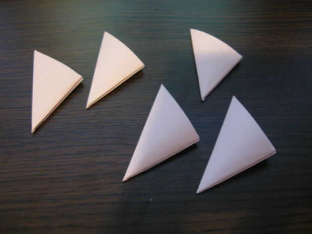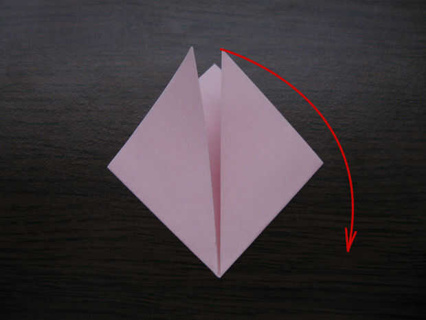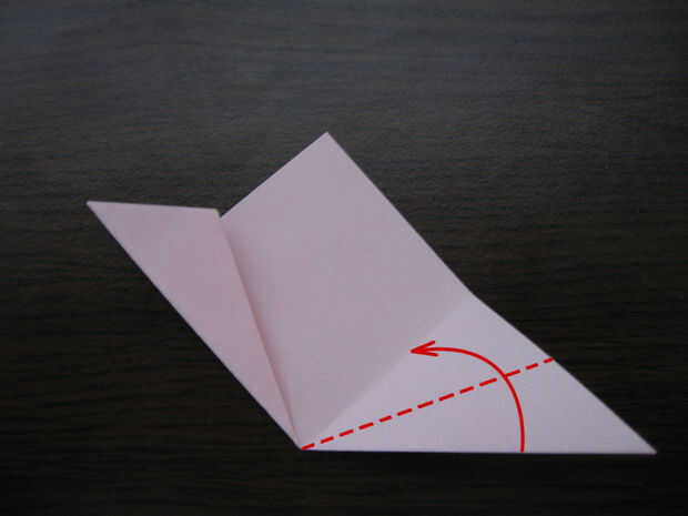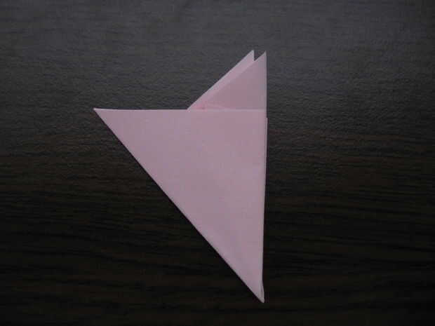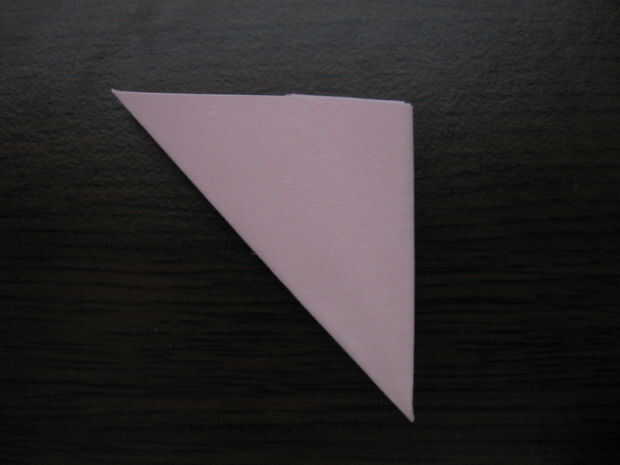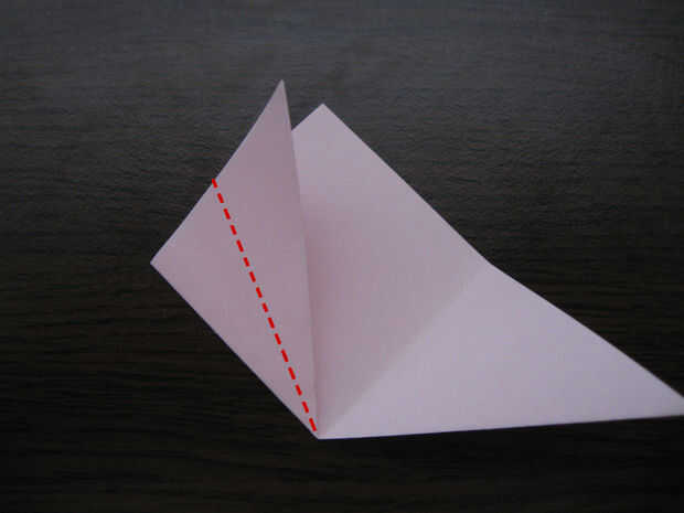 Tomar una nota post-it y doblar por la mitad para hacer un triángulo (Figura 1). Doble la línea del guión para hacer un diamante (Foto 2). Volver la parte izquierda en la posición anterior (cuadro 3). Doble la parte derecha por la mitad (cuadro 4). Hacer lo mismo con la parte izquierda (imagen 5). Luego doblar todo el modelo por la mitad (cuadro 6). Doblar por la mitad otra vez como en la imagen 7, pero esta vez pone el triángulo más pequeño bajo el más grande (véase el cuadro 8 para el resultado). Pliegue en la línea de guión y otra vez el triángulo más pequeño interior (cuadro 9). El modelo está listo.