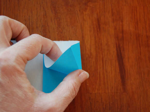 Ahora presione suavemente hacia abajo en el exterior. Lo verás formando un cuadrado.