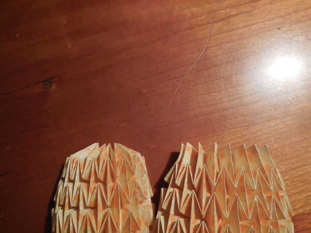 Una vez que tengas ambas mitades que puede comenzar a hundirse en los bordes, si no sabes lo que esto significa entonces busque en el cuadro 5. Asegúrese de que usted les hunden la forma correcta, si no luego se puede modificar una vez que se realiza. Hundimiento consiste en empujar la aleta crear dos triángulos que sobresalen. Mira las imágenes para asegurarse de que tienes todo hasta ahora.
