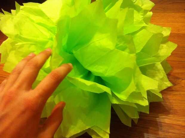 Después de eso, se puede ajustar cada hoja de la forma que desee la bola a ser. ¡ Felicidades! Han hecho una bola de papel de seda!!! Puede ser utilizado para una decoración del partido, apoyo de fotos o decoración para la habitación de los niños!
