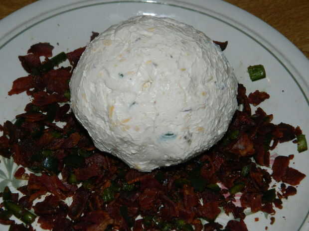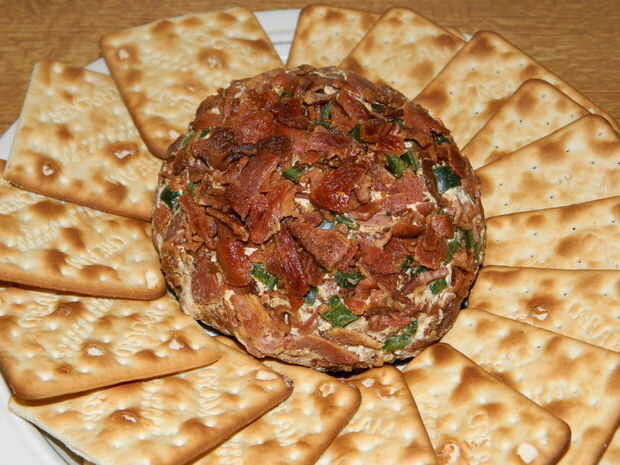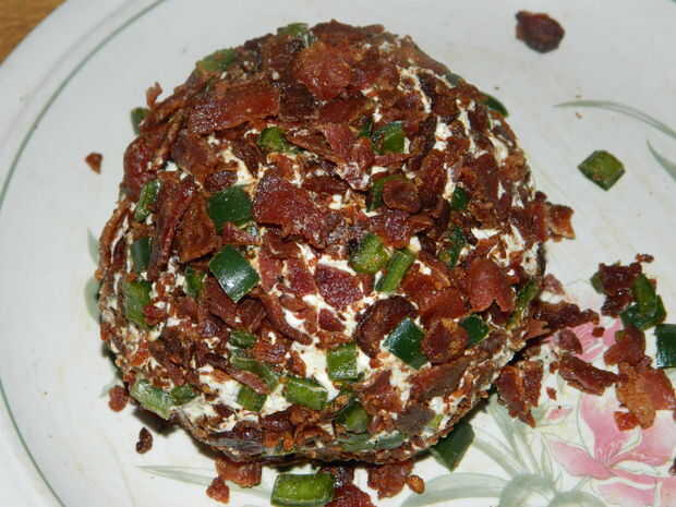aquí es una bola de queso muy sencillo hecha con tocino y pimientos jalapeños.