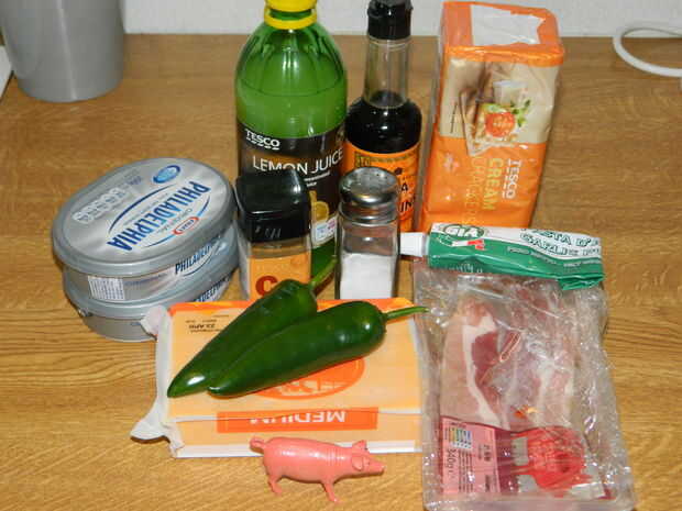 delicioso tocino envuelto bondad!Jalapeños rellenos con queso crema estrelló un capullo dorado a la parrilla de balcón gloria!!!!Paso 1: Haz tus cosas ~ Se necesita:Jalapeños de alrededor de 2 docenas1 libra de tocino2 paquetes de queso cremaPalillos