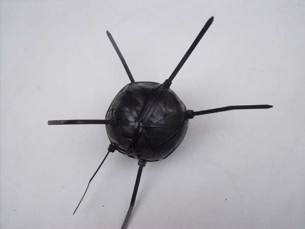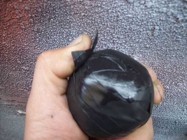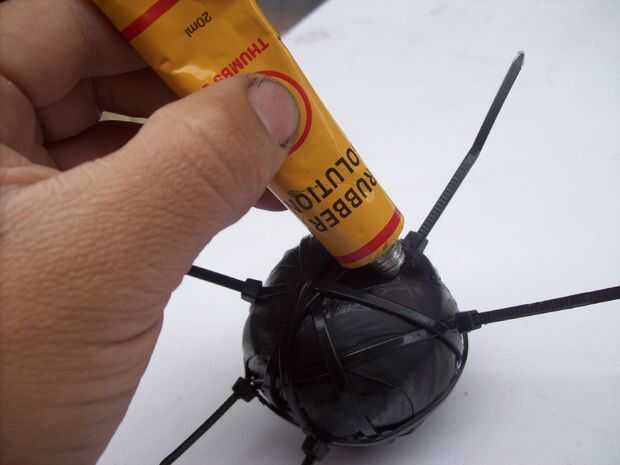 Cuando acabado envolver la bola con ataduras de cremallera y dejar secar la solución de caucho.