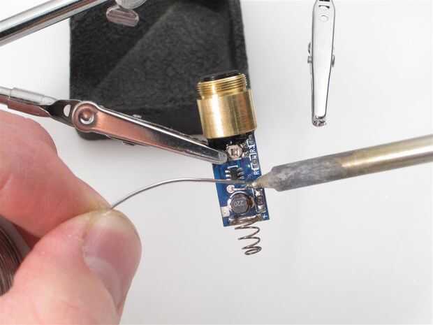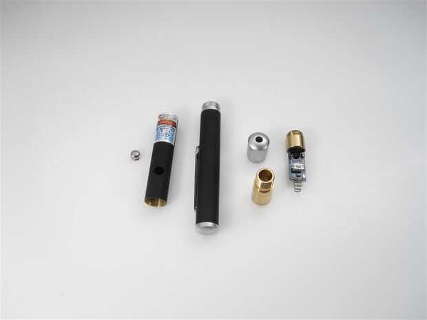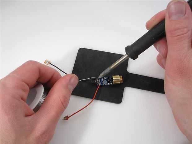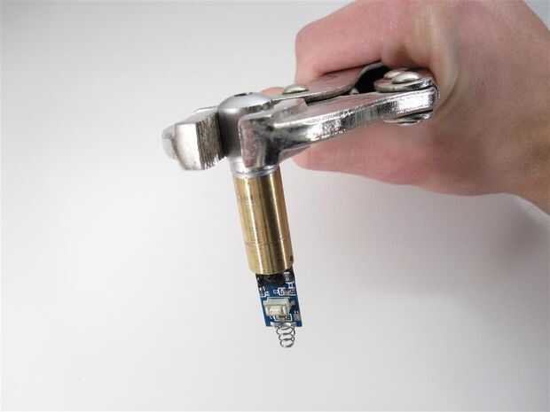 - Quitar el módulo del laser del puntero con dos pinzas mediante un movimiento giratorio