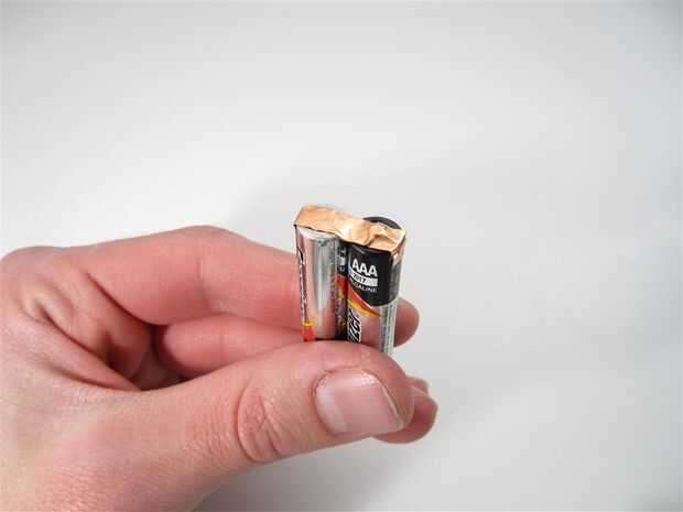 - Conecte la cinta de cobre a las terminales de la batería abierta y utilizar cinta aislante para hacer una pequeña batería