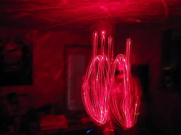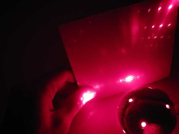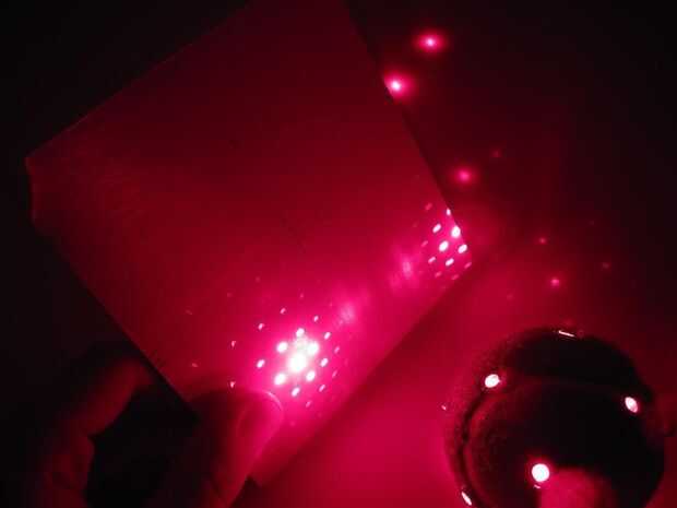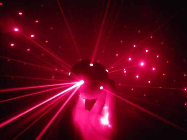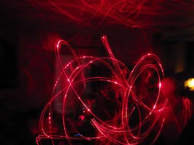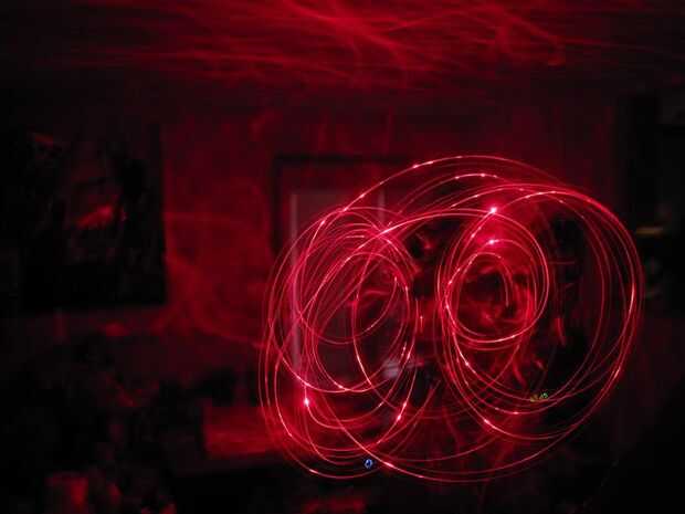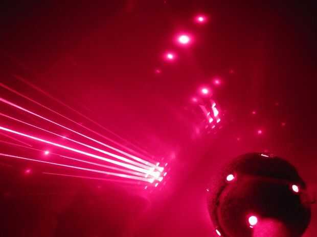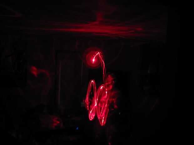 ¿Bola de láser? Echale un vistazo. ¿Cámara Point-n-shoot? Echale un vistazo. Así que ahora ¿qué? ¿Cómo se captura la genialidad de láser? Hay básicamente dos maneras sé para fotografiar rayos laser: 1) utiliza una máquina de niebla o 2) Use una larga exposición opción en tu cámara y una tarjeta de papel blanco. Creo que la mayoría de la gente ha visto pintura clara larga exposición, que puede trabajar igual con láseres. Pero la diferencia con los lasers es la pregunta: ¿cómo se captura el rayo estrechísimo de la luz y no sólo la llamarada de la fuente?