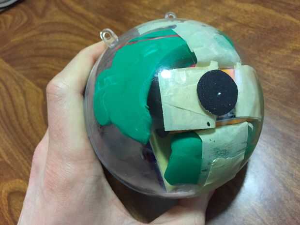 Elegimos una bola de adorno de plástico cerca de 4 pulgadas de diámetro, pero cualquier cosa más o menos esférico o tambaleante funcionará. Incluso podría utilizar algo opaco y montar la exhibición de LED en el exterior. Recomiendo elegir algo que está diseñado para tambalearse y vienen a descansar rápidamente.