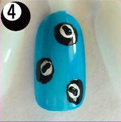 4. hacer dos puntos pequeños, ligeramente superpuestas/contacto con el esmalte negro. He intentado hacer un poco más pequeño que el inferior toca mis puntos, pero no necesariamente necesita hacer eso. Estos se convertirá en el "8" en el paso siguiente (y este método es mucho más fácil que intentar dibujar simplemente 8s)