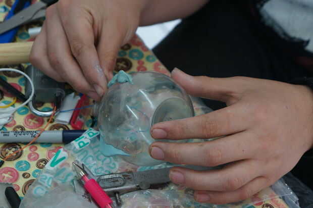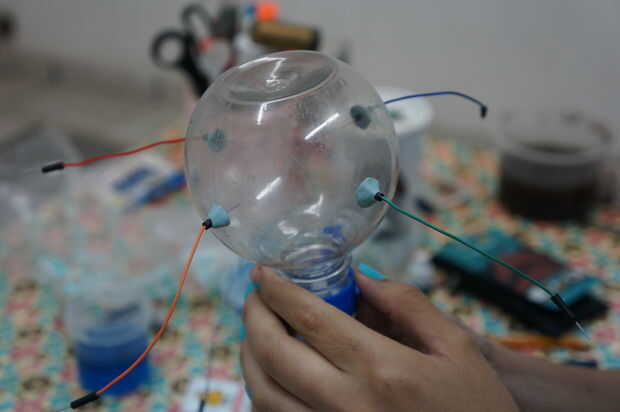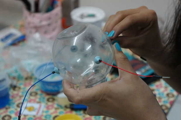 Una vez seco, prepárate un poco mas de plastilina y adhiere los cables siguiendo la forma de el atomizador como se muestra en la imagen y deja secar.