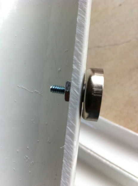 3. con imán cara de PVC, inserte el tornillo de cabeza plana en la cara del imán, luego coloque una arandela de bloqueo e inserte en el orificio del PVC