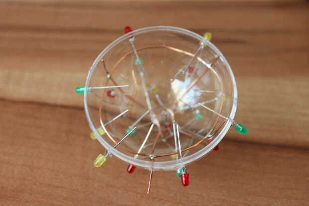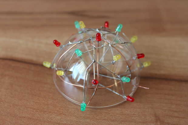 El siguiente paso es soldar los ánodos de los LEDs en el exterior de la bola. Puede seguir un patrón nuevo, si se puede.