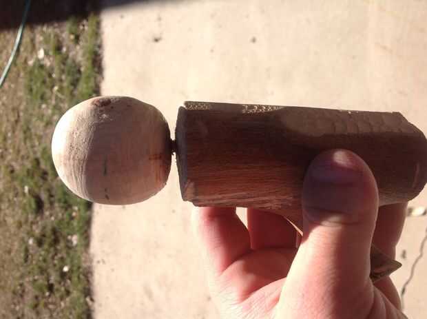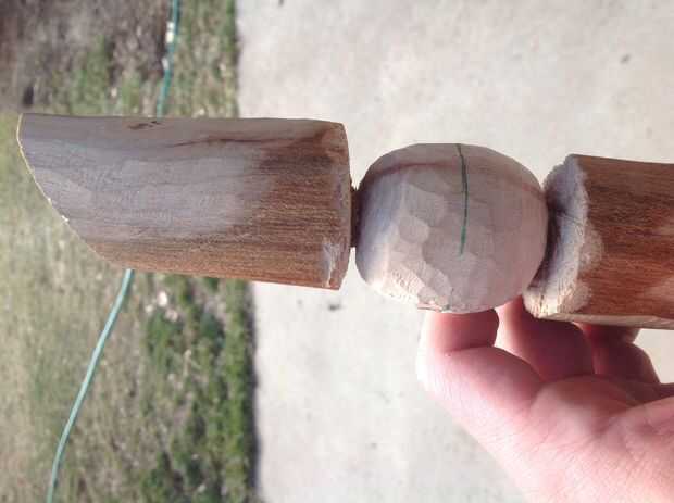 Continuar la ronda de serrado y talla hasta que usted tiene en su mayoría. VI fuera de un lado y comience a lijar ese fin mientras que todavía tiene un mango.
