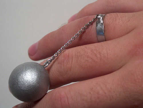 Una vez seca la pintura os adjunto la cadena a la argolla. Esto es un barato, pero decente buscando regalo para el novio en su vida.