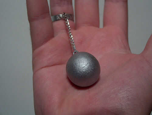 Dejando a un lado encontró una pelota hinchable de goma y pintado plata metalizado y atornillar un tornillo de ojal.