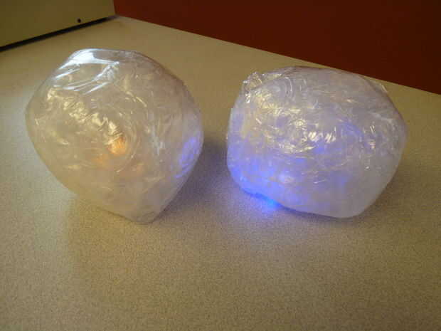 Yo estaba investigando maneras de ser creativo con LEDs como parte de un proyecto de electrónica. He estado usando corchetes (también conocido como poppers) como componentes conductivos en mis circuitos. Aquí es una manera de utilizar bolsas de plást