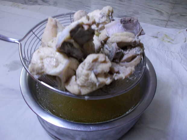 Ahora tenemos que vaciar el caldo que se utilizará más tarde para hacer el dip.