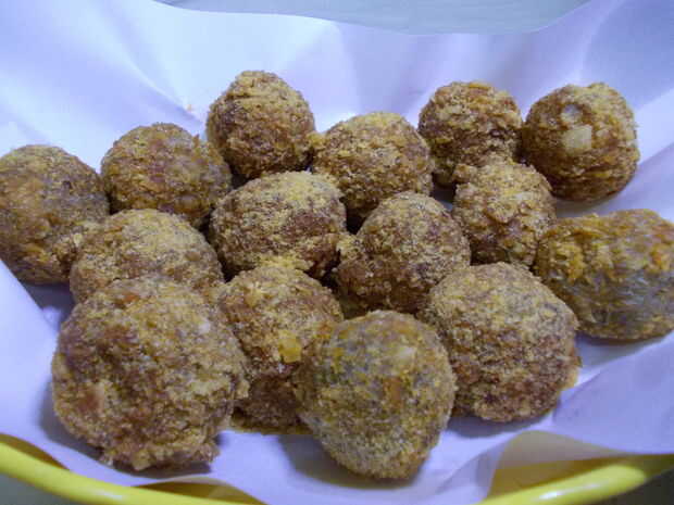 Finalmente las bolas son preparada (segunda foto) y su tiempo que freírlos.