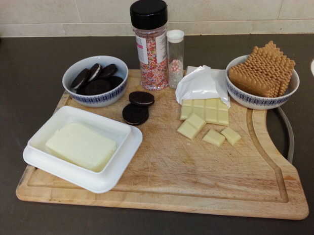 -Algo para cubrir las bolas (utilicé caramelos coloridos / coco)
