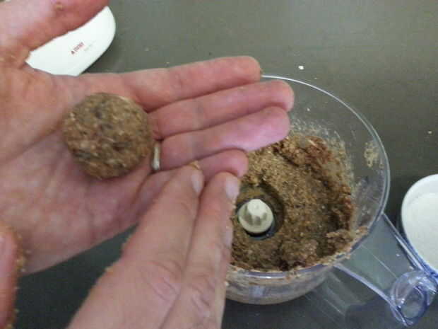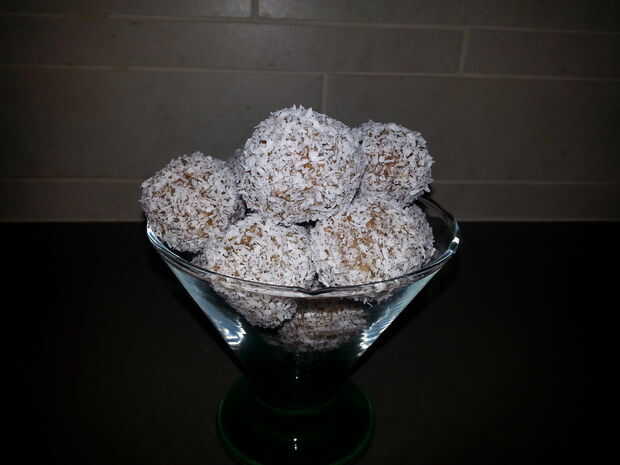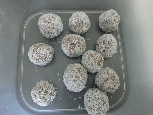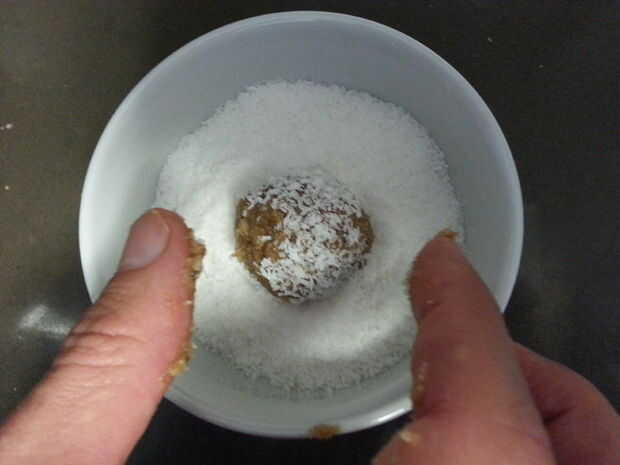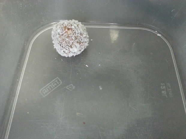 Ahora, tomar pequeñas cantidades de la mezcla y formar bolitas, luego sumergir en el polvo de coco.