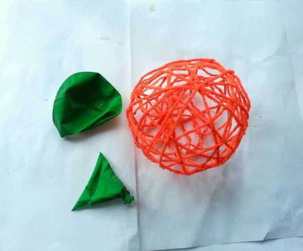 Después de que el pegamento seca Asegúrese de liberar el hilo del globo, empujando el balón en los lugares donde se une el hilo, de lo contrario se arruinará la bola de hilo después de hacer estallar el globo.