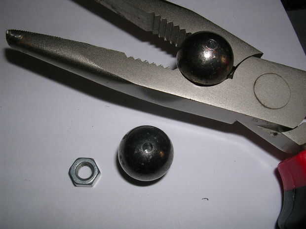 Perforé la bola 8mm de profundidad por lo que podría conseguir unos 4-5mm de hilo en el agujero.
