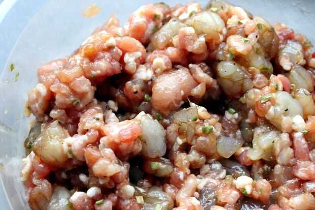 Siempre me gustó ir a casas de Dim Sum. Desfile del carro tras carro de bolas de masa hervida pequeñas por su mesa.Quería probar hacer mi propio. Por suerte tenemos un mercado asiático cerca de donde yo no sólo consigo envolturas y pescado fresco per
