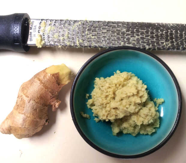 Es una buena manera de tener jengibre molido suave agradable a la cáscara con una cuchara para minimizar el desperdicio (salida de Jessy de maravilloso instructable sobre cómo pelar y almacenar el jengibre fresco muchas gracias Jessy!) y rallar con una zester de Microplane.