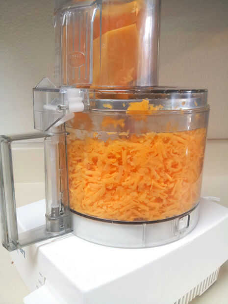 Pelar y rallar la calabaza con la mano o en un procesador de alimentos. Preste atención para cortar los trozos pequeños, como 1" de ancho, por lo que las hebras ralladas son corto - más fácil en la envoltura!