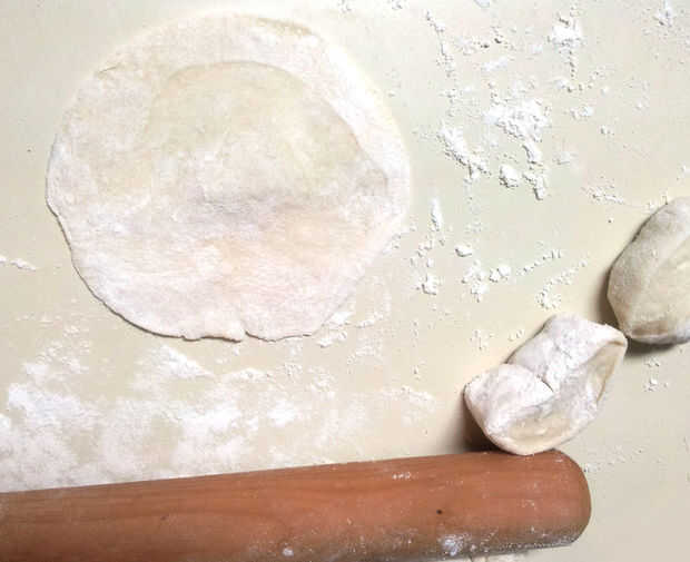 Esta técnica ayuda a crear un contenedor que es más delgado hacia el borde y más gruesa en el centro. Así que la bola de masa hervida es bastante fuerte para sostener un montón de rellenos, pero delicado y no demasiado pastosa.