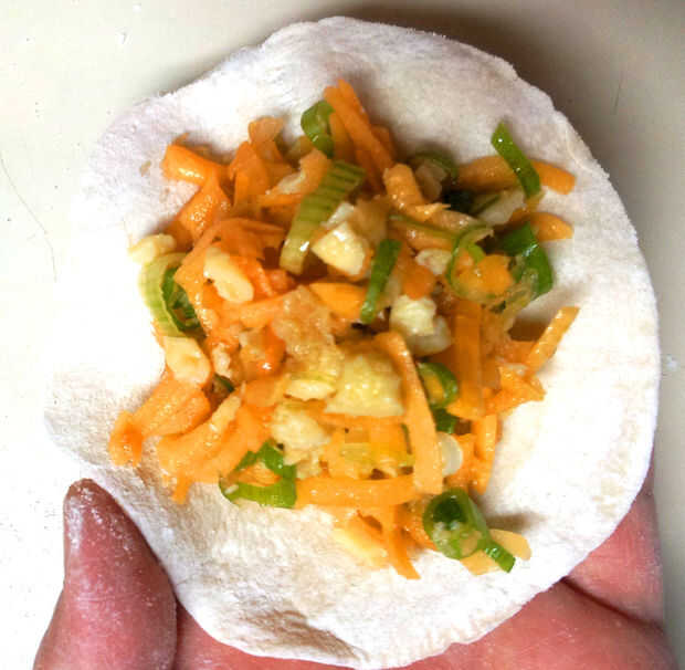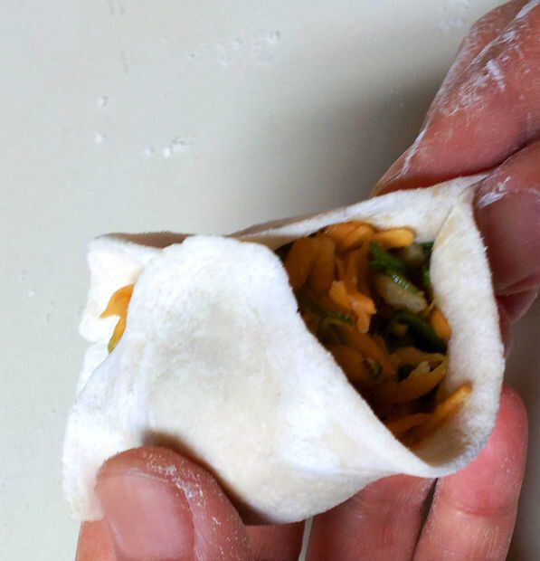 Un Consejo importante (se menciona otra vez el final) - antes de empezar a pellizcar todos esos bolas de masa hervida, cocine un poco del relleno en el horno de microondas o una sartén pequeña y ver si necesita ajustar la cantidad de condimentos. Si tiene un sabor muy suave, añadir más salsa de soja sal y aceite de sésamo. Si demasiado salado, añadir un poco vegetales sin sal.