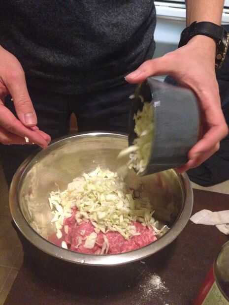 Cocino la bola de masa hervida China!Es la carne jugosa y tierna.Vamos a cocinar!Paso 1: Preparar colUtilice cinco pedazos de col.Paso 2: en cubosLa col necesita ser picado.Paso 3: Preparar un puerro blancoPreparar un puerro blanco.Paso 4: Picada, ta