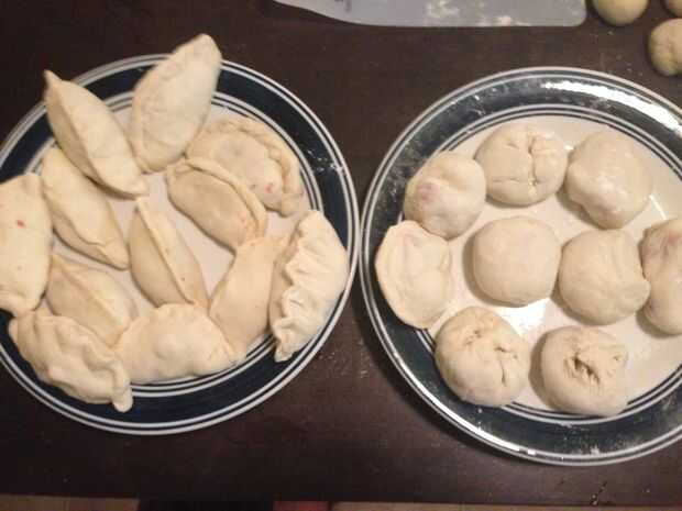 Nota: Puede hacer diferentes formas de sus bolas de masa hervida dependiendo de preferencias personales como la piel de la bola de masa hervida envuelve todo el relleno. ¡ Sea creativo!
