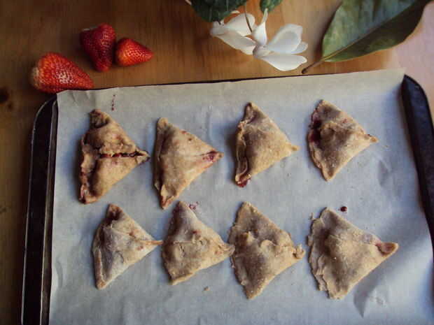 Ahora que terminaste! No era tan difícil. Colocarlos en una bandeja de horno cubierta de papel sulfurizado y esmalte con claras de huevo. Poner en el horno durante quince minutos comenzar, pero probablemente necesitará más tiempo. Llevarlos a cabo cuando los lados son de color marrón dorado.