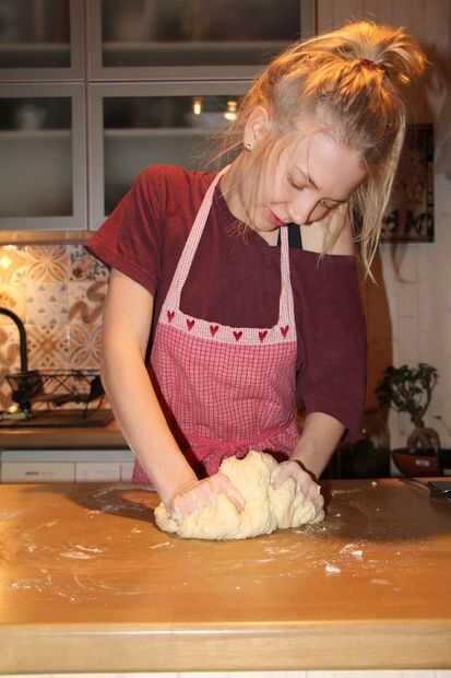 La masa se pegue en tus manos. Sólo mantener la mezcla. Debe aflojarse eventualmente. Si no, entonces sólo tiene que añadir más harina de bits.