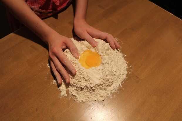 - Coloca 800 ml de harina sobre una mesa limpia.