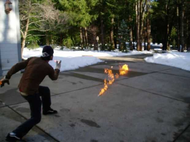 Su realmente muy fácil hacer bolas de nieve de fuego. Todo lo que necesitas es un día de nieve, guantes, gas y un vacío scull.