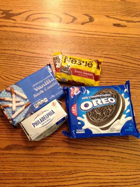 Usted va a necesitar los siguientes ingredientes: un paquete de 14,3 onzas de galletas Oreo, un paquete de 8 onzas de queso crema, capa de la corteza de vainilla y chips de chocolate.