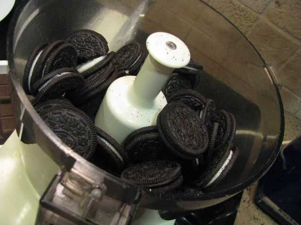 • Machacar finamente Oreos en procesador de alimentos o una bolsa de plástico por el uso de las manos.