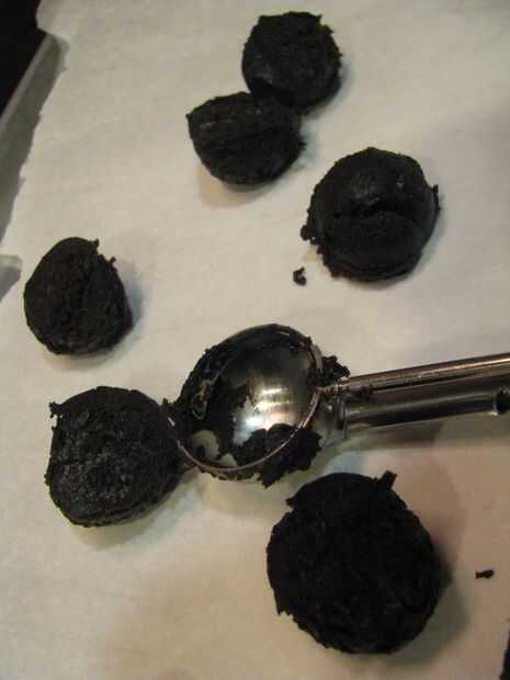 • Sacar la masa de la nevera y dividir en bolas de tamaño de mordedura. (Usé una cuchara para galletas pequeñas, funcionó muy bien! Pero sólo puede globo ocularlo.)