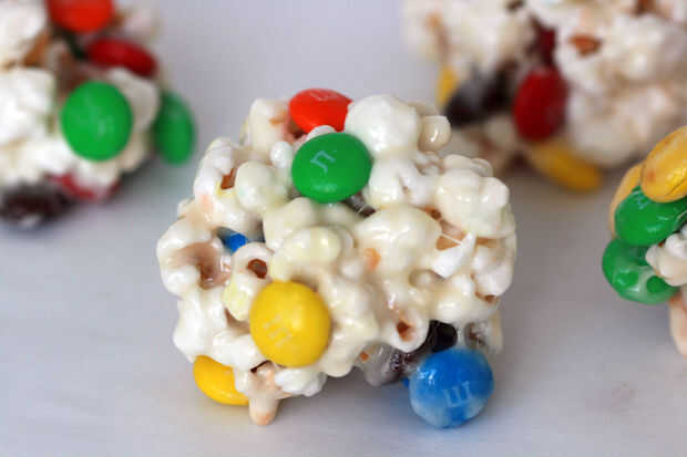 tres ingredientes, tres minutos y tres pasos - que es todo lo que necesitas para hacer estas bolas de palomitas de maíz fácil, pegajosa y masticable. Diga adiós a su termómetro de caramelo! Arrivederci, jarabe de maíz. El olor ya más tarde, esquiva bola dura etapa! El horno de microondas es su nuevo mejor amigo. Tan pop algunos maíz, engrasar las manos y vamos a conseguir ballin'.