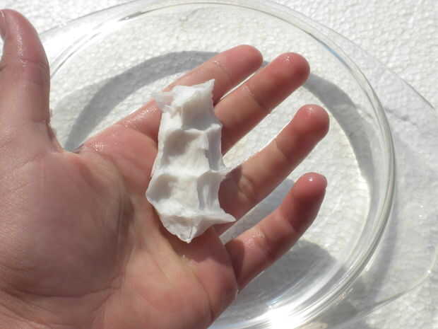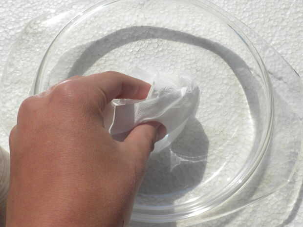 Luego sumergirla en agua, exprimir el agua hacia fuera.