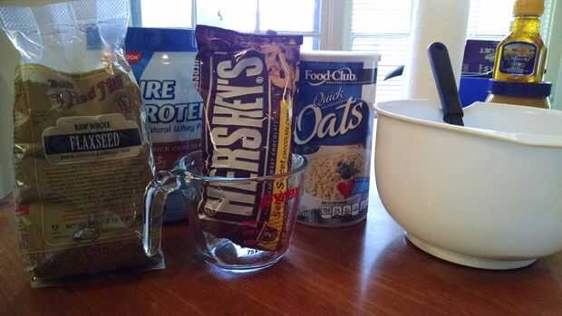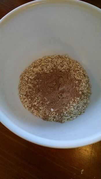 En un tazón, mezclar 1 taza de avena 1 cucharada de polvo de proteína.
