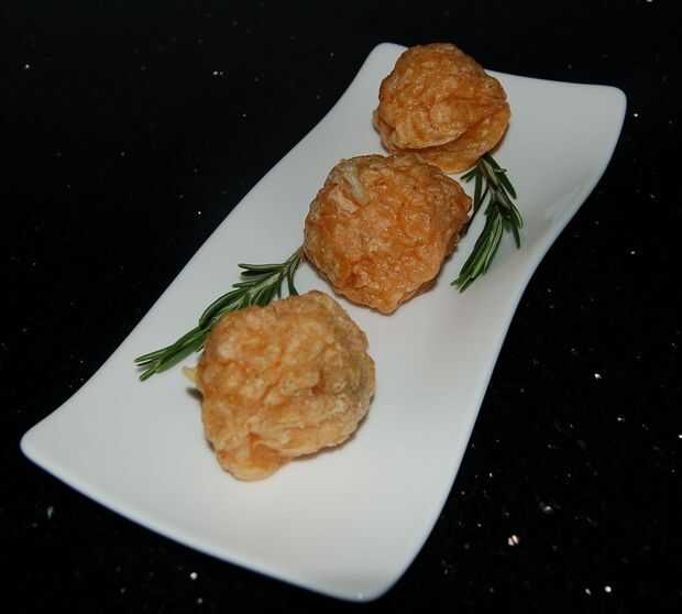So... Yo busqué en Google "bolas del risotto" y encontramos esta receta: http://iamafoodblog.com/shrimp-risotto-balls/ tomaron la inspiración de un plato Dim Sum chino donde cubren cangrejo garras con pasta de camarón y freír los. Esta receta fue un poco escasa en las instrucciones y detalles pero después de algún ensayo y error, aquí está mi versión de "Lujo" bolas de Risotto de camarones. Estos se pueden hacer con cualquier tipo de Risotto pero me encanta el contraste del rico y terroso risotto de setas con la capa de camarones dulce.